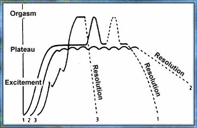 Principal understanding of the physiology of the human sexual response emanates from observational research studies by William H. Masters, M.D. and Virginia E. Johnson. The researchers tested 382 women and 312 men in more than 10,000 episodes of sexual activity. They also studied more than 7,500 cycles (one cycle is an individual episode of sexual activity) of female sexual response during intercourse, masturbation or oral sex. They were the first researchers to put forth a four stage model that described and explained these natural physiologic changes. The four stages are excitation, plateau, orgasm, and resolution.